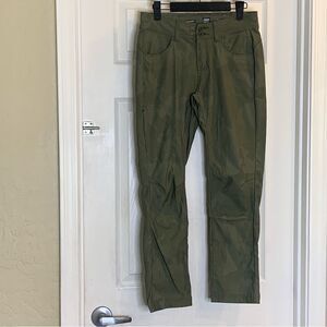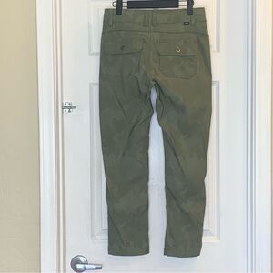 Front hip pockets; left-side coin pocket; back patch pockets with snap closures; on-seam pocket with an invisible zipper closure at wearer's right side