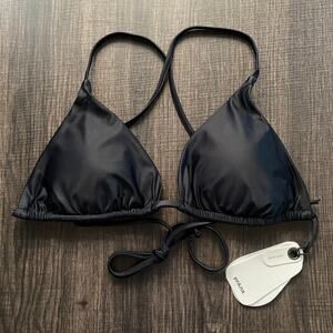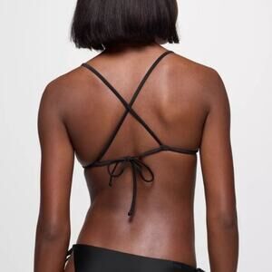 Prana Hana Highway Triangle Swim Top Women's L Black Halter Tie Crisscross Back