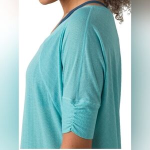 Prana Helani Teal Top XS Oversized Activewear Ribbed Sleeve Athleisure Yoga