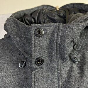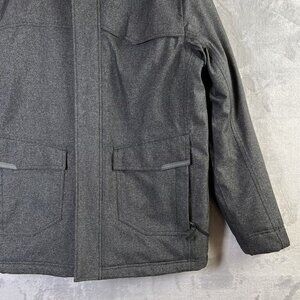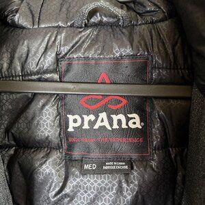 Prana Holmes Puffer Shell Jacket Men's Medium Grey Hooded Insulated Outdoor Snow