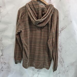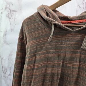 Prana Hoodie Mens Large Brown Orange Striped Pullover Shirt Organic Cotton