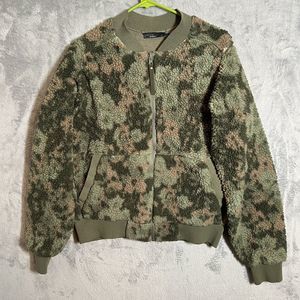 Prana Jacket Womens Large Fuzzy Bomber Polar Escape Camo Reversible Sherpa Teddy4