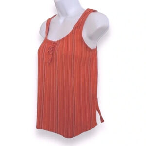 prAna Jardin Stripe Tank Top with a tie front, curved hem and side slits. Pretty coral color. Cotton blend. Size XS. In very good condition!