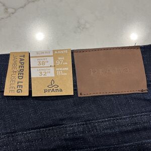 Prana Jeans Mens 38x32 Blue Dark Rinse Hillgard Tapered Leg Slim Fit Organic Cotton