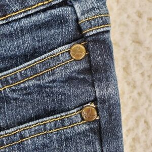 Prana Jeans Womens 8 Blue Bootcut Dark Blue Stretch Embroidered 27x32.5