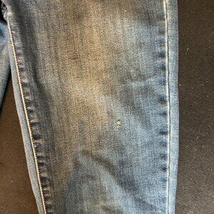 Midrise, skinny jeans with sturdy yet stretchy denim. Well worn with lots of life left in them. See photos for denim color and signs of wear. Prana pants run large... I normally wear a size 6 in other brands.