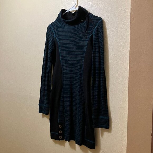 Prana Women's Kelland Blue/Black Wool Blend Mock Neck Long Sleeve Sweater Dress Size Small.