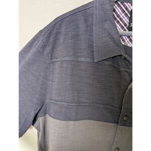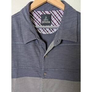 PrAna Keylyn Button Down Gravel Grey Short Sleeve Organic Cotton Shirt Men L