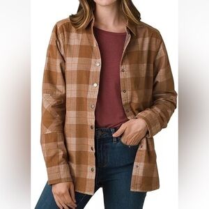 Prana Large Camel Porter Park Neutral Plaid Button Down Flannel Shacket Y1