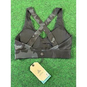Prana Layna Bra Black Camo Strappy V Neck Sports Bra NEW Size XS