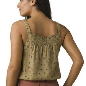 Prana Little Palm Cami Smocked Tie Hem Tank Top Green Sweet Grass Meadow XL NWT
