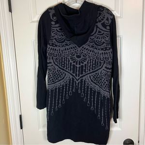 Prana Long Full Zip Black Sweater Tunic Duster Misha with Design on Back Size Med Comfy
