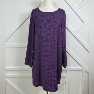 Prana Long Sleeve Cece Shift Dress in Black Plum Purple Size Medium
