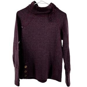 Prana Lucia Herringbone Sweater Turtleneck Button Tie Oversized Wool Purple M