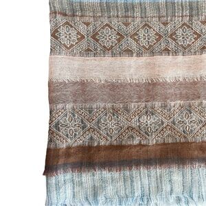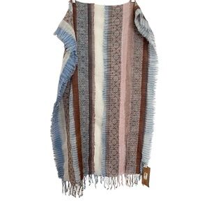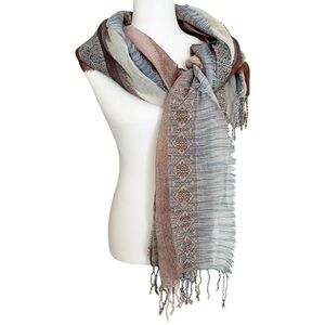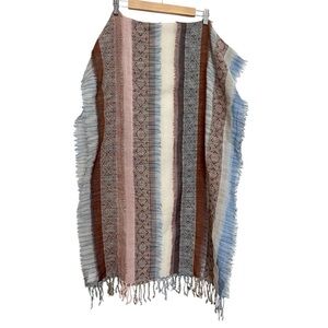 Prana Mae Boho Lightweight Wool Multi Stripe Raw Edge Fringe Tassel Long Scarf
