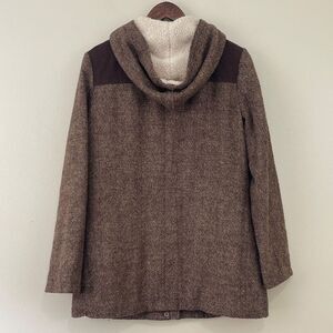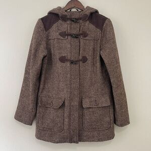 Prana Megan Wool Brown Tweed Hooded Toggle Duffle Coat Jacket Womens Medium