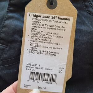 Prana Mens 30x36 Black Bridger Jean Pant 5 Pocket Outdoor Straight Slim NEW