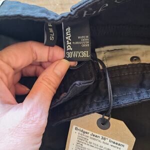 Prana Mens 30x36 Black Bridger Jeans Pants Denim Outdoor Straight Slim NEW