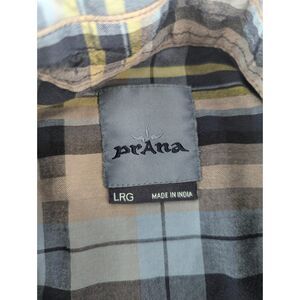 Prana Men's Blue Cotton Flannel Button Up Plaid Long Sleeve Shirt Size Large