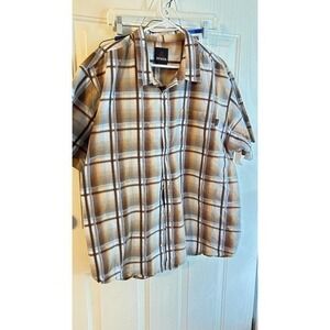 Prana Mens Brown Plaid Short Sleeve Button Down Shirt Size xxl/reg