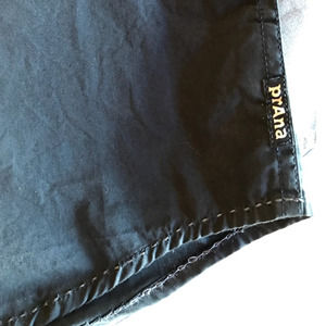 Prana casual shirt made with crisp organic cotton in very good condition with no stains, holes, fading or tears. Details like plaid contrast and contrast stitching along hemline make for a fun and fashionable find. 25 inches pit to pit and 32 inches long.