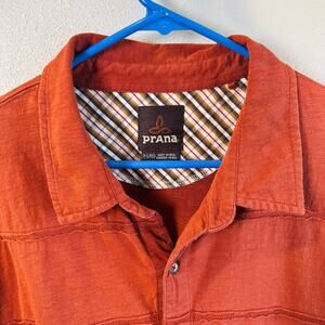 Prana Mens Size XL Orange Short Sleeves Stretch Button Up Shirt Casual Office