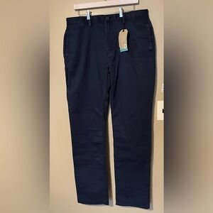 Fine twill stretch fabric blend is composed of organically grown cotton with a hint of elastane
