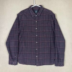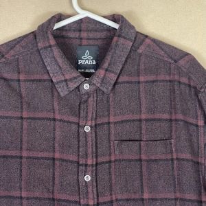 Prana Mens XL Long Sleeve Button Up Flannel Shirt Brown Plaid Chest Pocket