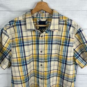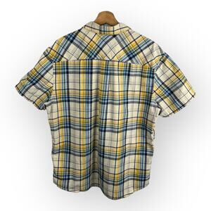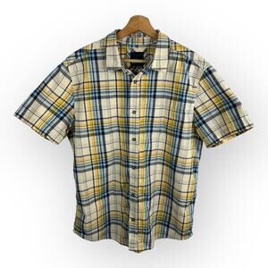 Prana Mens size Large Benton Short Sleeve Button Plaid Camp Shirt M11191486