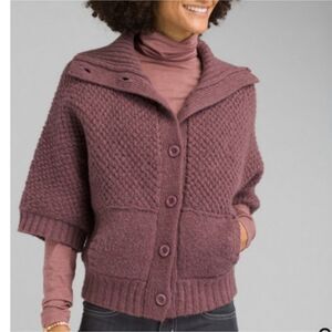 Prana Milone Wool Blend Sweater Cardigan Shrug Mauve Small