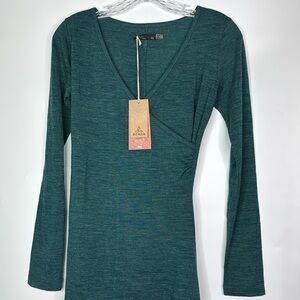 Prana Nadia Green Wool Blend Long Sleeve Vneck Dress Size XS NWT