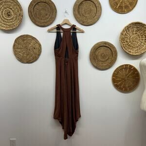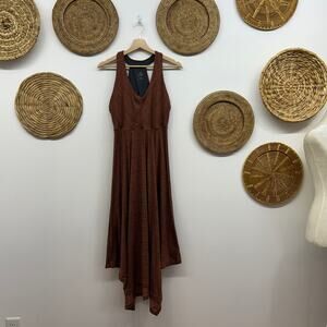 Prana Neutral Brown Racerback Cut Out Asymmetrical Midi Saxon Dress Large Sporty