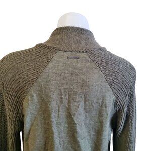 Prana Olive Green Open Front Diamond Cardigan Sweater Med Hemp/Organic Cotton