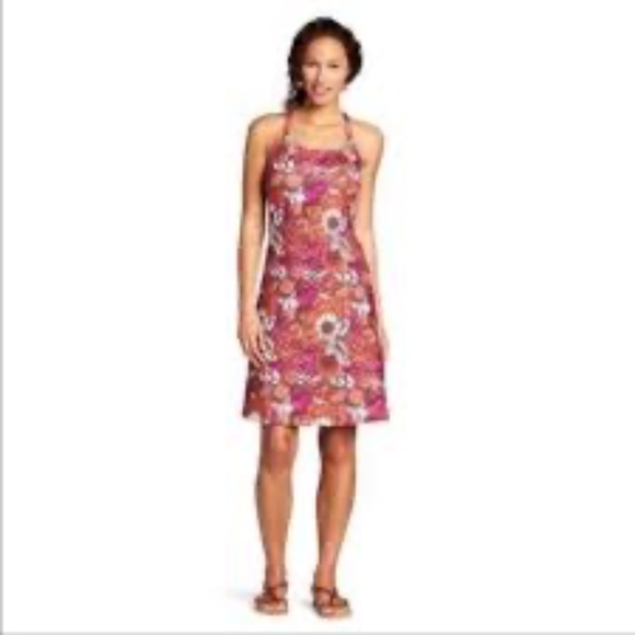 gently used, Excellent condition Prana Quinn dress. Congo beats floral print. Pink orange and white. Built in shelf bra. A line cut, Prana brand, size women's small, open to offers, dm me for more info!!