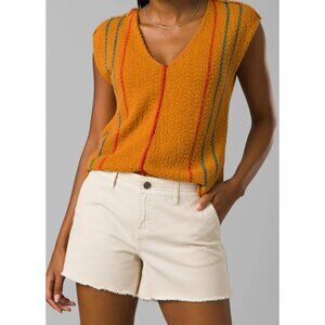 Prana Orange Muscle Tee with Red and Blue Stripes