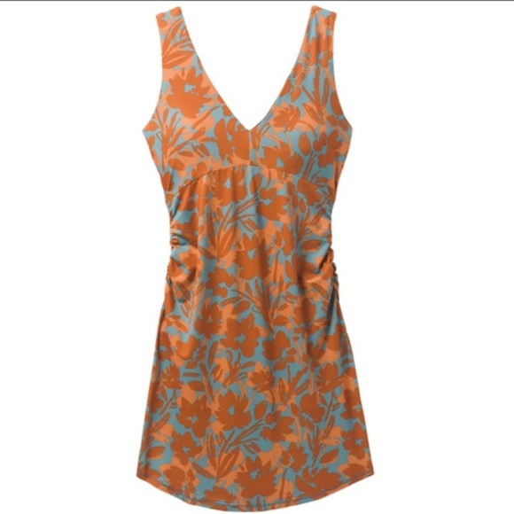 Stylish midi dress with floral pattern. Features a flattering V-neck and ruched sides. Perfect for casual outings.