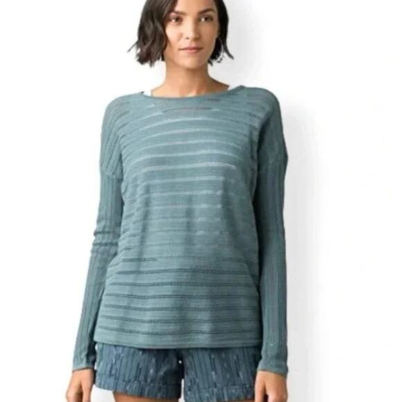 Prana Organic Cotton Madeline Sweater Top Womens Large Teal Athleisure Shirt