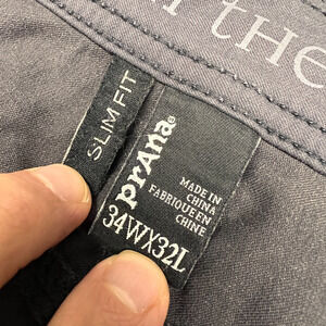 Prana Pants Mens 34x32 Gray Nylon Slim Fit Performance Hiking Outdoor