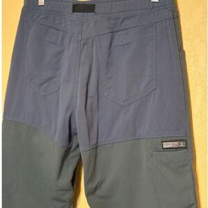 Prana Pants Men's Medium Slate Blue and Dark Green Color block Pants, Front Pockets, Back Hook and Loop closed pockets, 2 leg pockets, straight leg, Outdoors Nature Hiking Belt Clip, 100% Nylon