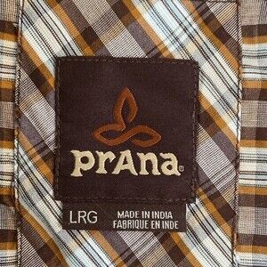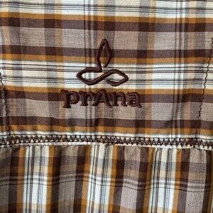 Prana Breathe pearl snap button up plaid checkered shirt.