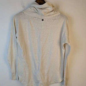 The Penelope Pullover is cut from an organic cotton/polyester blend lightweight jersey knit. This relaxed fit long sleeve layering piece is styled with a cowl neck and T-shirt hem.