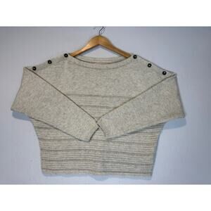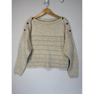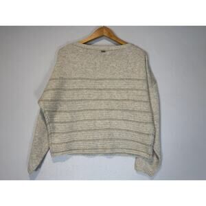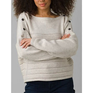 Prana Phono Sweater Ribbed Wool Blend Small Oatmeal Boxy Boat Neck