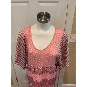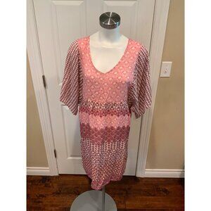 Prana Pink Patterned Shift Dress W/Short Sleeves, Size Small