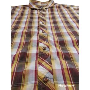 Prana | Organic Cotton Plaid Short Sleeve with Fancy Snaps | Size Medium