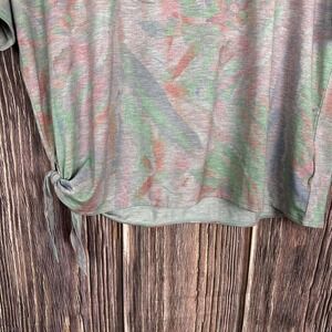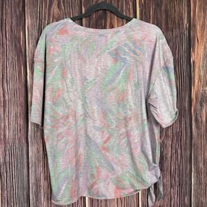 Prana Polyjungle Top Womens Large Pink Green Floral Short Sleeve Side Tie TShirt