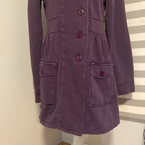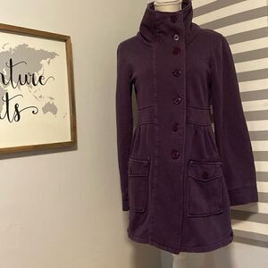 prAna Purple Breathe Button Up Mock Neck Long Line Jacket