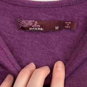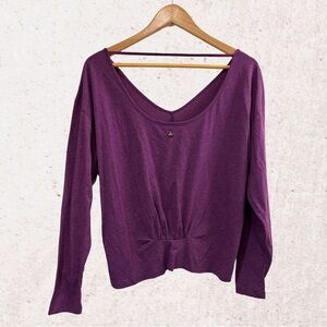 This Prana blouse features a rich purple hue and a relaxed fit, perfect for casual wear. The long sleeves and soft fabric ensure comfort throughout the day, while the wide neckline adds a touch of elegance to the overall design.
