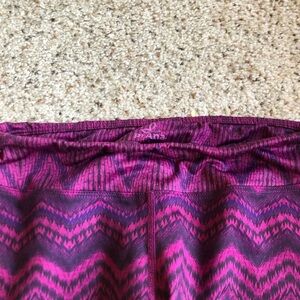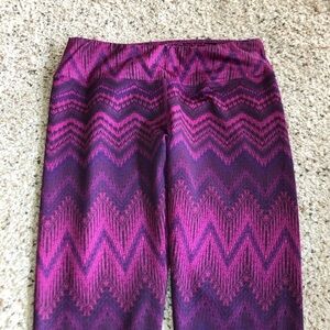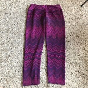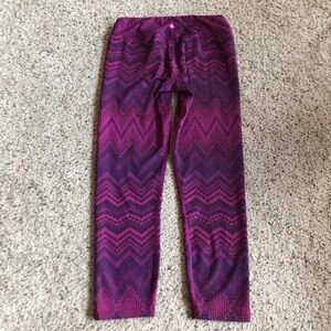 Prana Purple Roxanne Chevron Zig Zag Capris. There is some slight wear on the elastic. As shown in photos above. In otherwise great preowned condition. Feel free to make a reasonable offer through the offer button!