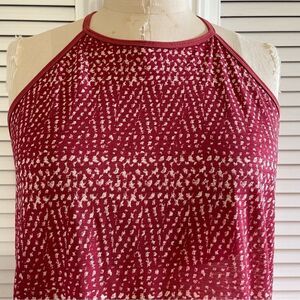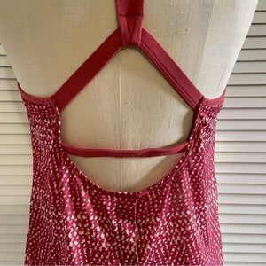 Prana Racerback Crimson Red & White Tank Top Sz-L. Attached bra liner, light weight, slit on the center back hem. Great condition!