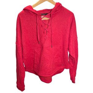Prana Red Hooded Cropped Lace Up Pullover Sz M